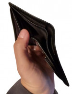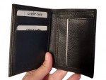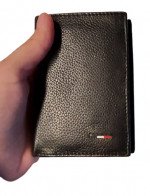 Incluye dos ranuras para billetes, un bolsillo con botón para monedas y 6 espacios para tarjetas.