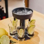 Funciona a modo de embudo: coloque la bebida en la parte ancha de arriba y ésta se irá distribuyendo uniformemente por todos los vasos.