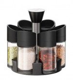 Soporte con 6 botes para organizar los principales sazonadores y especias usadas en la cocina.