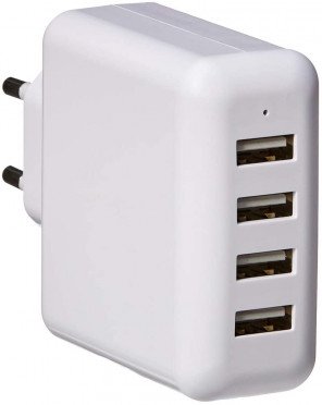 Comprar Cargador corriente 4 puertos USB. Ideal para cargar su móvil, tablet o cualquier otro aparato que se pueda cargar con usb, todos al mismo tiempo y con carga rápida. Más información -