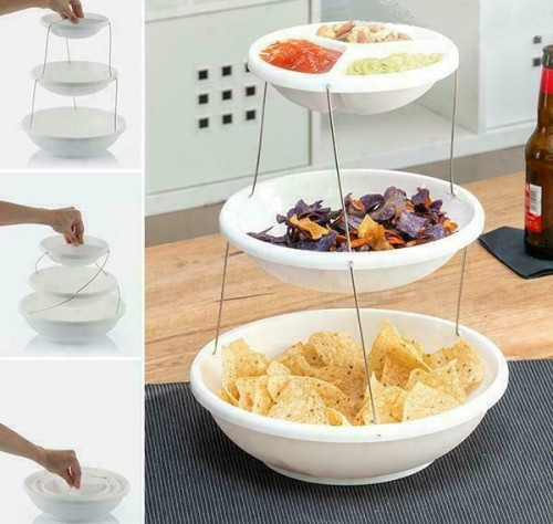 Comprar Bowls plegables 3 alturas. Cada altura tiene un plato de un tamaño diferente.