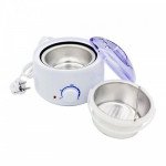 La tapa de plástico semi transparente permite ver el contenido y evitar contaminar la cera.