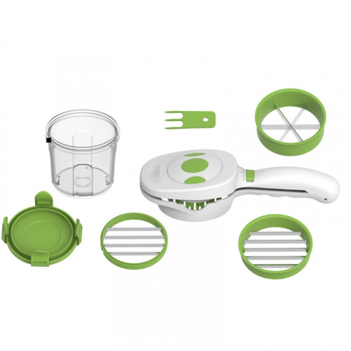 Es perfecto para usarlo con diferentes verduras: simplemente inserte al alimento, presione y todo se cortará perfectamente en segundos.
