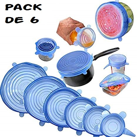Se trata de un juego de 6 tapas flexibles de silicona, que se adaptan a cualquier recipiente, según su tamaño.